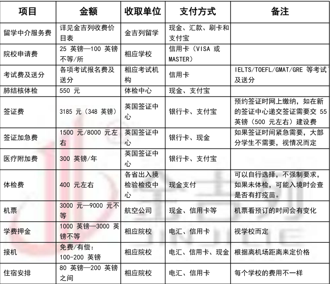 以上的留学费用初中介服务外,其他的费用会根据英镑的汇率变化而变化。
