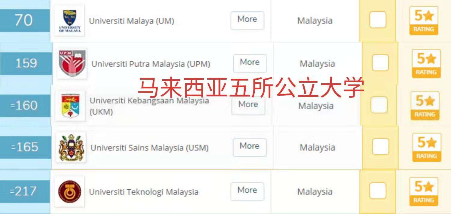6.著名学府有:马来亚大学(2020世界排名70),博特拉大学(2020世界排名159),理科大学(世界排名160)等