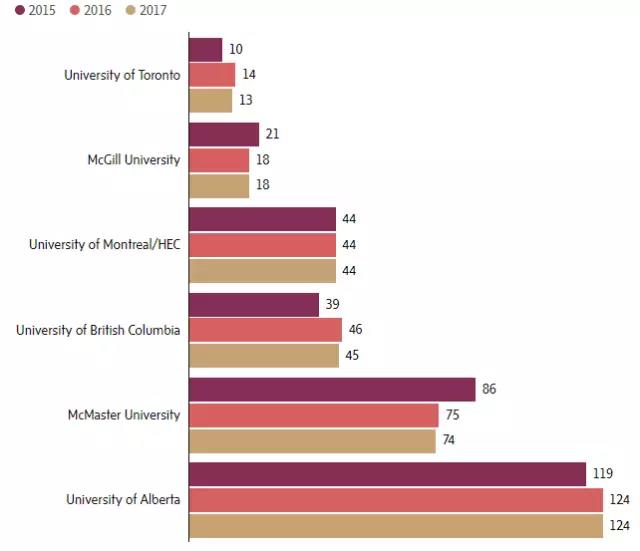 加拿大有6所大学上榜,和前几年相比变化不大: