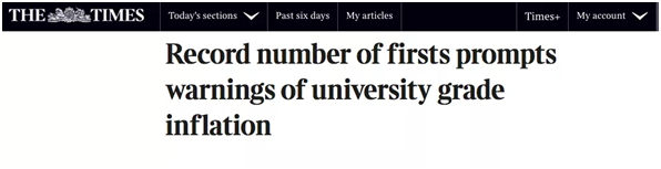 阻止一等学位失控: 自 2012 年学费上涨两倍、大学获准扩招以来,获得全国一等学位的学生数量激增,这导致学生的离校成绩要高于前几年的同类学生。