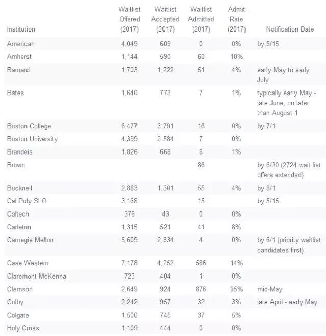学妹今天就从 college-kickstart 中为大家截取了美国大部分最受欢迎的公立学校和私立学校的 2017 年 Waitlist 统计数据以及这些学校今年的通知日期。
