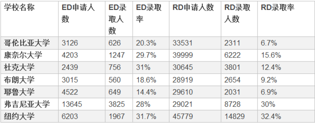 从表中我们可以看出,提前申请的录取率要比常规申请的录取率高出很多,这也就是为什么越来越多的学生选择进行提前申请的原因。