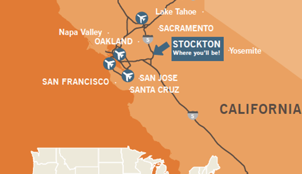 距离旧金山驾车 1.5 小时,距离硅谷驾车约一小时 . 另外,还有旧金山校区和萨克拉门托校区。加州的硅谷在近年来全球经济体中排名 18 位,拥有四成美国 TOP100 的公司,美国三分之一的风险投资都投资于硅谷,为太平洋大学的学生提供良好的实习、就业、创业环境。