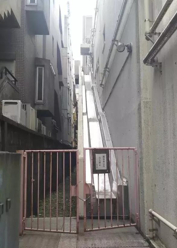 逃生通道我们见的不少,却没见过这样的——“两点间线段最短”式逃生通道。 这个滑梯式紧急通道,真的把“紧急”二字考虑得十分到位。 从室内到室外,只要一步,就能很快逃到外面去,比起爬楼梯,更加的省力气,省时间。