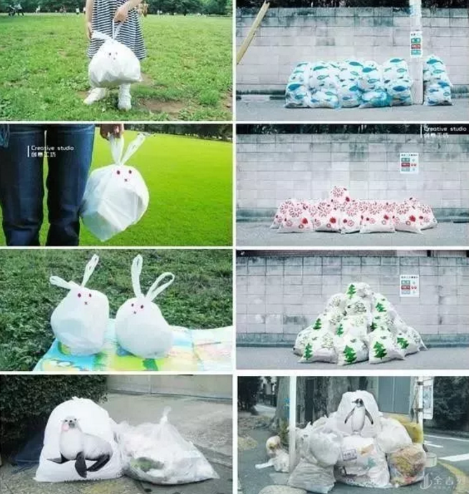 比起国内朴素的纯色垃圾袋,日本很多垃圾袋都会设计可爱的图案,看起来既干净、美观; 而且日本人对于垃圾的分类可谓是一种艺术,垃圾桶把各类垃圾标识图形化,每个日本人的好习惯,让整个国家每年可以节约出大量的资源。