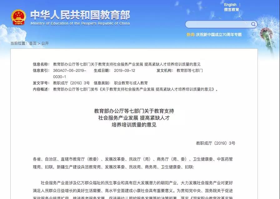 鼓励引导普通本科高校主动适应社会服务产业发展需要,设置家政学、中医康复学、中医养生学、老年医学、康复治疗学、心理学、护理学和社会工作等相关专业。原则上每个省份至少有1所本科高校开设家政服务、养老服务、托育服务相关专业。