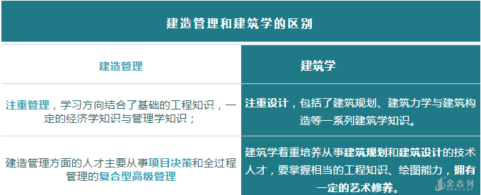 总的来说,建造管理人员是建筑项目中不可或缺的一部分。很多人或许会疑惑建造管理与建筑学的区别,其实他们的主要不同之处如下: