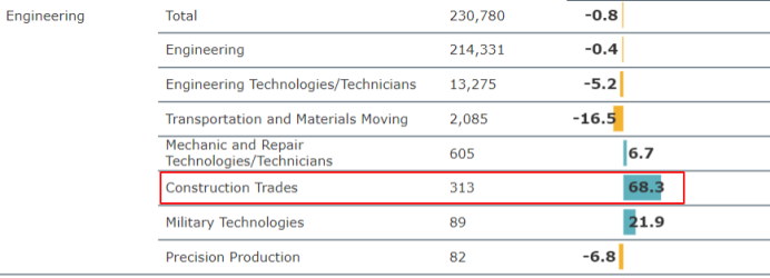 ·建筑学专业的建筑与贸易方向(增长68.3%)