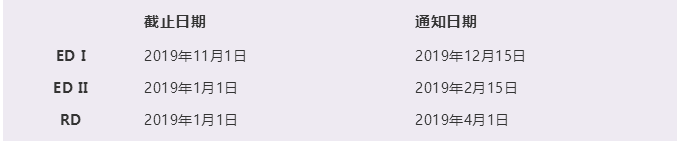 BC官网公布的2019年ED I 、ED II和RD的申请截止日期