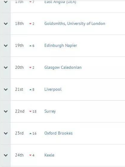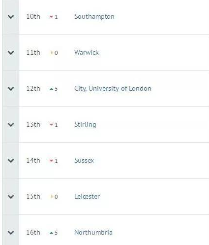 完整大学指南排名指标: