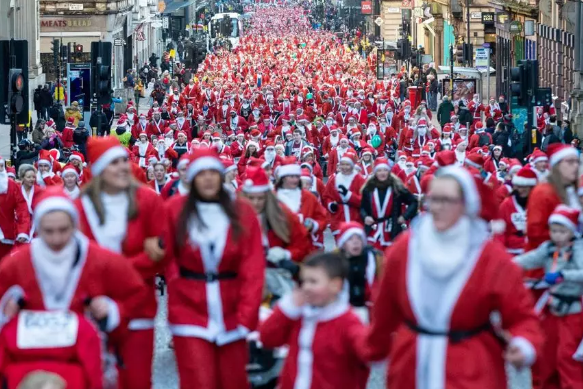 Santa Dash是一年一度的5公里趣味跑活动,参与者购票的费用将捐助给慈善机构。这一天所有人身穿红白圣诞老人服装,在格拉斯哥街上向着终点线冲刺。自2006年活动第一次创办起,“圣诞老人跑”已经为多个慈善机构共募款超过35万英镑,现在它已经成为每年圣诞节最受大家期盼的活动之一啦!去年 (2018) 此活动吸引了8千余名“圣诞老人”一起上街奔跑,今年你也会是其中一员吗?