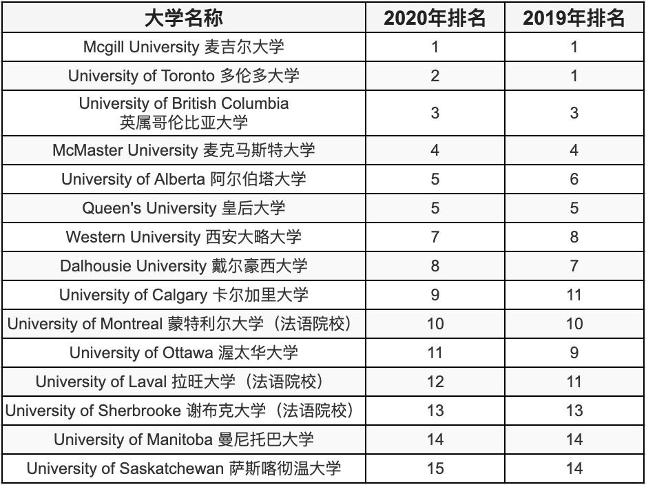 2020加拿大大学排名 医博类