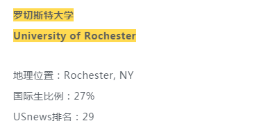 罗切斯特大学位于美国纽约州北部罗切斯特,学校设有6个学院,共开设超过175门学位课程,其中英语、音乐、金融、量子物理、心理学、数学、计算机、生物医学工程和光学等专业素享盛誉。在教师和校友中,该校有12名教授是诺贝尔奖获得者。