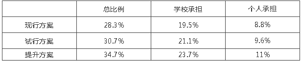 谈判委员的这个方案中,提出要将养老金总比例提升至30.7%,其中学校承担21.1%,个人承担9.6%。