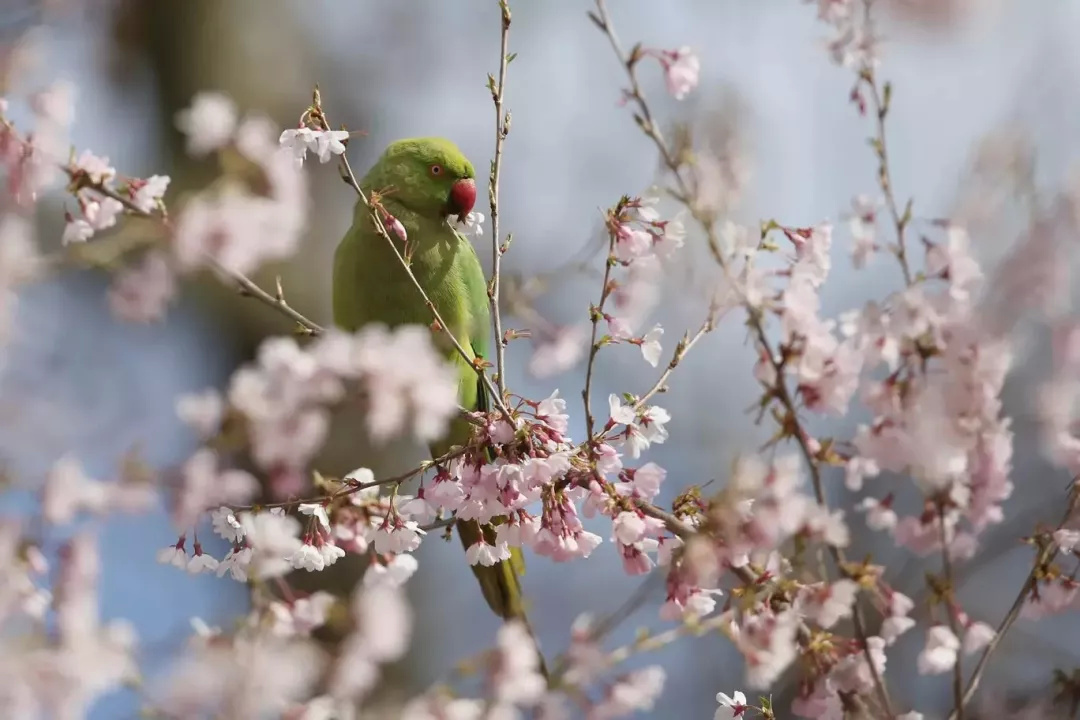 圣詹姆斯公园里的繁花中,你能捕捉到鹦鹉的踪迹。