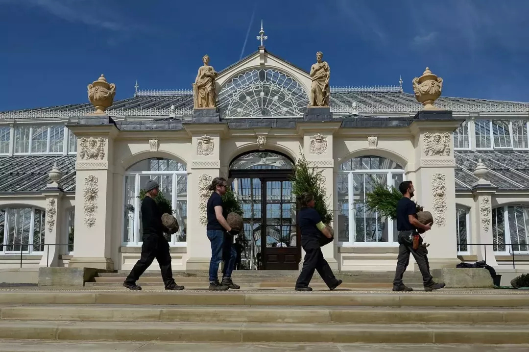 丘园的园艺师们开始用新鲜的植物装点四周。