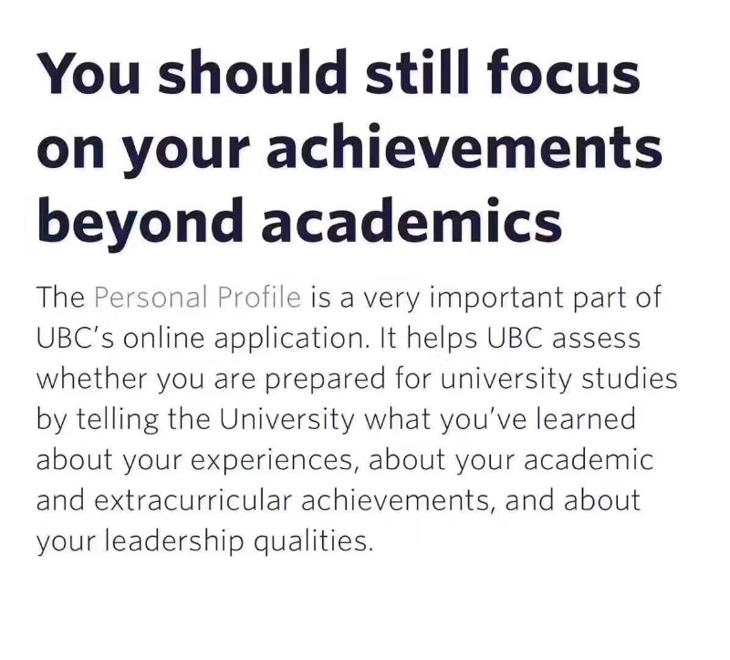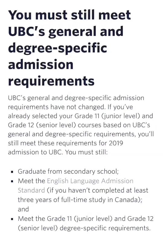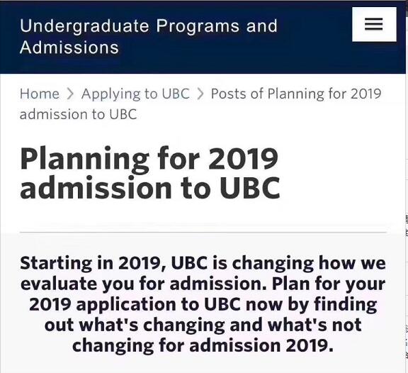 重要告知:2019申请季UBC本科申请新变革:在原有申请要求的基础上,UBC对申请者11年级成绩的看重,同时课外活动以及活动成就方面展现学生的领导力的展示同样很重要…加拿大名校申请趋势是越来越重视申请者学术与课外活动相结合传统申请已经被抛弃了,越来越看重学生们的综合发展。