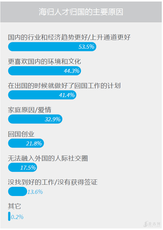 近几年来,越来越多的留学生选择回国就业。在LinkeIn的《中国海归人才吸引力报告》中显示,海归人数不断攀升,在接受调研的在美华人中,59%都有意向回国寻求职业发展。