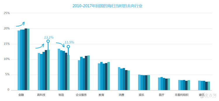 近年来,金融和高科技依然是海归的主流选择,而科技企业对海外人才的关注点也聚焦在云计算、人工智能、区块链等时兴领域。