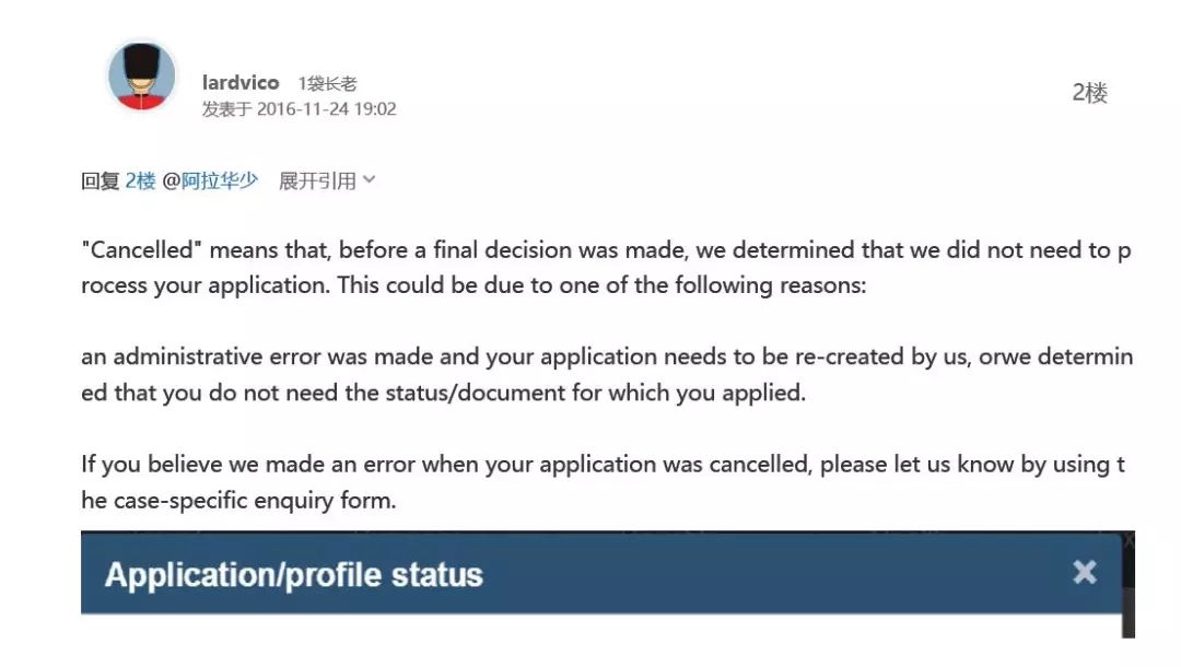 之后签证官在系统内 “ 取消 ” 第一个签证申请,形成了第二个签证申请。