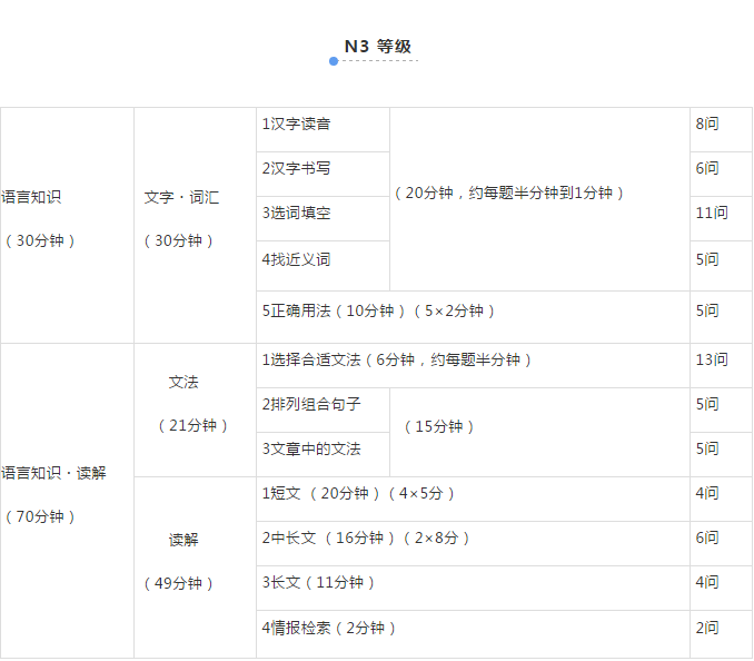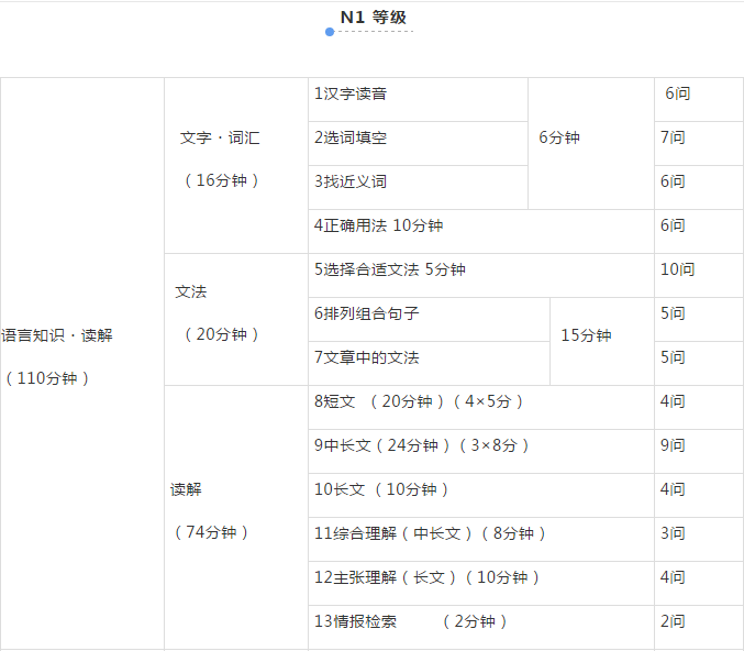 12月1日即将进行2019年的第二次考试,一起来看看,JLPT N1-N5等级应该如何合理分配时间~