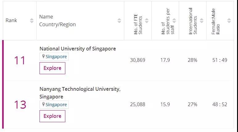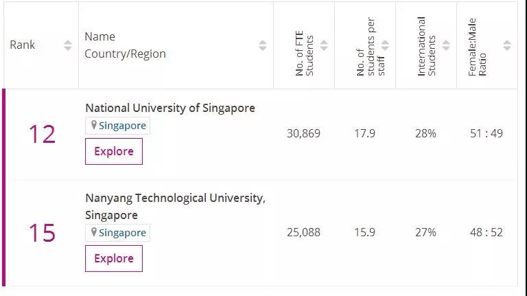 在Computer science学科排名中,新加坡国立大学是亚洲排名最高的大学,排名第 11 位(从第 15 位上升);新加坡的南洋理工大学,从第 29 位上升至第 13 位。