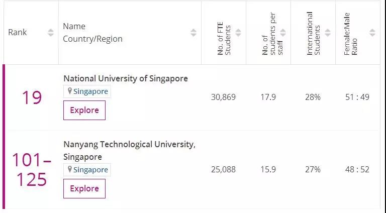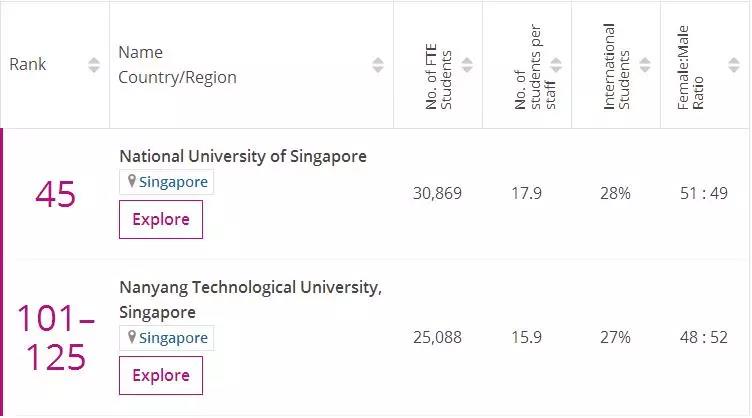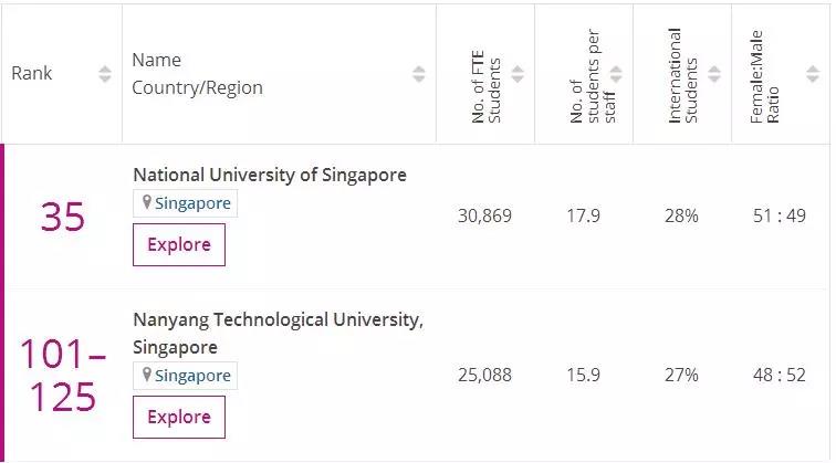 在Arts an humanities学科排名中,新加坡国立大学排名第35位,新加坡的南洋理工大学排名位居第101-125位。
