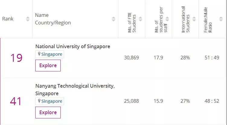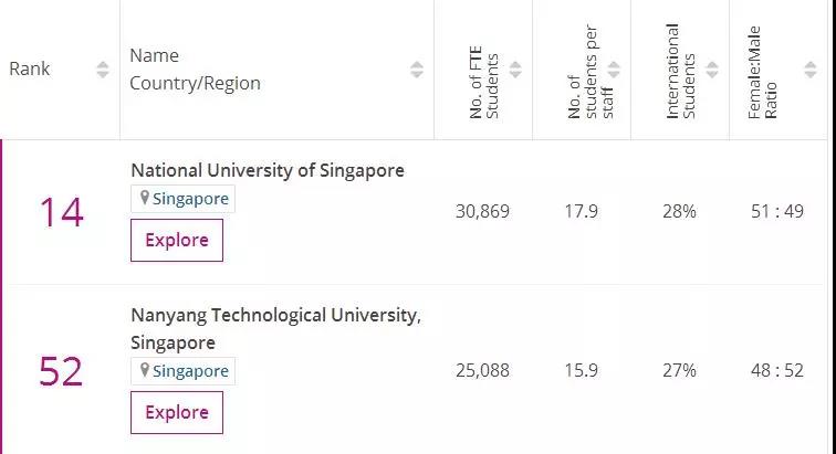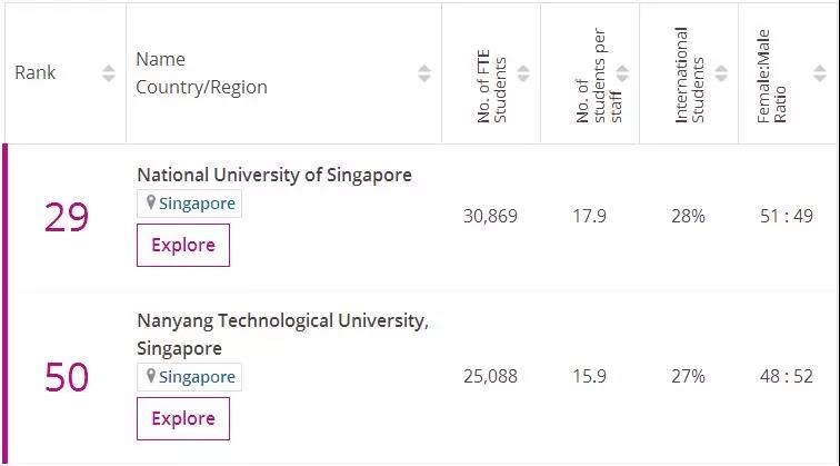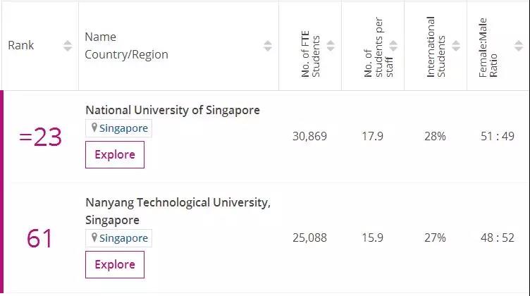 在Business an economics学科排名中,新加坡国立大学排名第14位,高于排名第19、20位的清华和北大,位居亚洲大学之首;新加坡的南洋理工大学排名位居第52位。