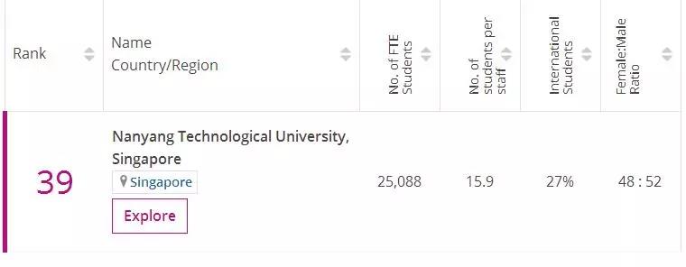 在Eucation学科排名中,新加坡南洋理工大学排名位居第39位。