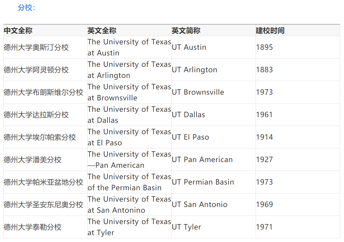 德克萨斯大学系统,又称德州大学系统,是位于美国德克萨斯州的著名公立大学系统,成立于1876年,包括9所大学,6所医学中心,拥有学生将近22万人,教职员工8万7千多人。德州大学奥斯汀分校为该系统的旗舰校区,成立于1883年,是该系统下成立时间最早,也是最为知名的大学,是美国著名的“公立常春藤”之一。