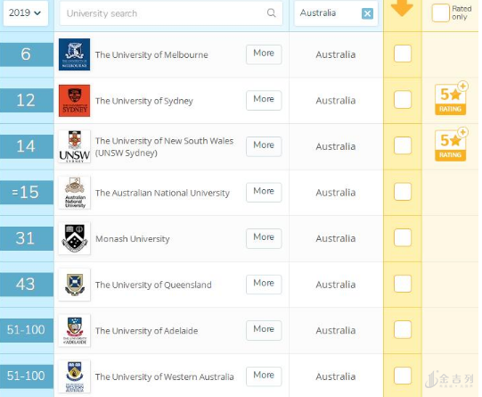 在2020QS世界大学学科排名-法学专业排名中,澳洲八大名校全部跻身全球TOP100,其中6所名列全球前50,墨尔本大学更是位居世界前十,排名第6位。紧随其后的,是悉尼大学,世界排名第12位。新南威尔士大学以2个位次之差位居世界第14位,澳洲第三。另外两所世界50强大学则为蒙纳士大学和昆士兰大学,分别名列全球第31和第43位。此外,阿德莱德大学和西澳大学在法学领域也表现优异,世界排名第51-100名。