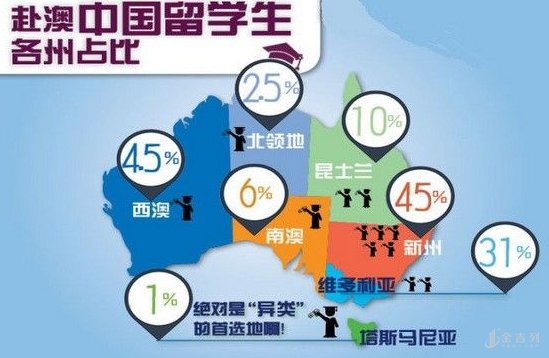 1.赴澳中国留学生各州占比: