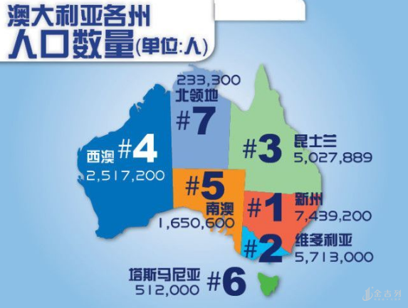 6.澳大利亚各州人口数量: