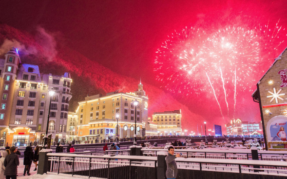 传统大型焰火秀后,游客们分散到各咖啡馆和饭店,参加新年宴会和丰富多彩的娱乐节目。此外,还可以去郊区的滑雪胜地克拉斯纳亚波良纳、罗萨-胡托尔和埃斯托-萨多克。不光冬季运动爱好者喜欢到滑雪胜地度假,那里清新的空气、美丽的自然风景和舒适的宾馆完美地结合在一起,吸引着大量游客的到来。游客们可以在这些地方闲逛并欣赏风景,或者坐索道,玩儿滑雪板、雪橇、雪地车和单板。新年夜可以在饭店预定酒席或在市中心游玩并欣赏焰火。宾馆会推出迎新表演和宴会。