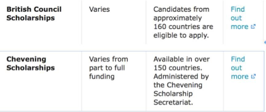 特别典型的就是大家都知道的志奋领奖学金以及British Council奖学金了,见下图: