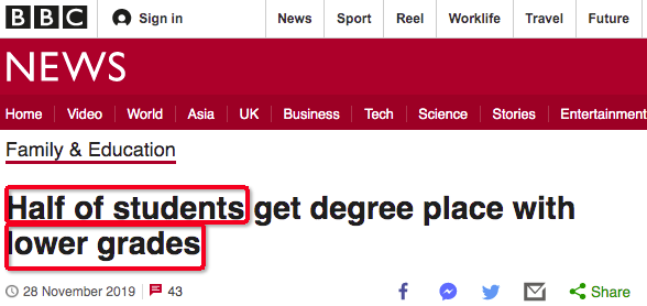 第一件 是,今年49%的英国高中生,以低于英国大学录取要求的A-level成绩,拿到了入学offer。