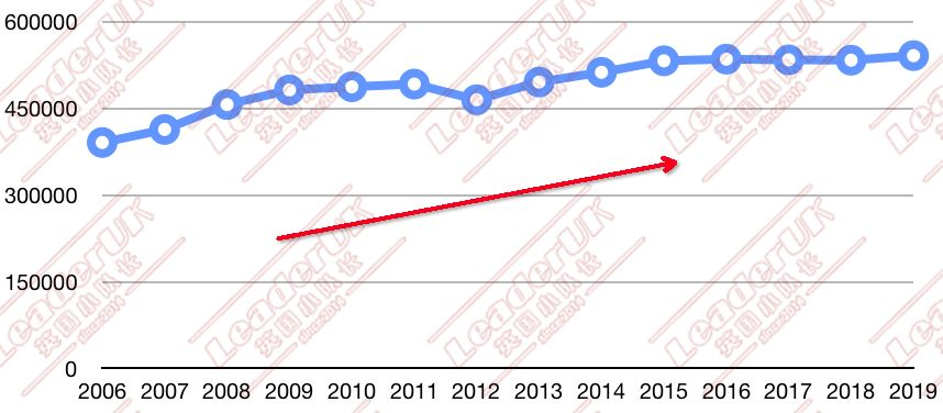 据UCAS统计,2006年英国本科生人数为390,890,而 2019年 已增长至 541,240 人,增长率超过38%!并且涨势还在继续。