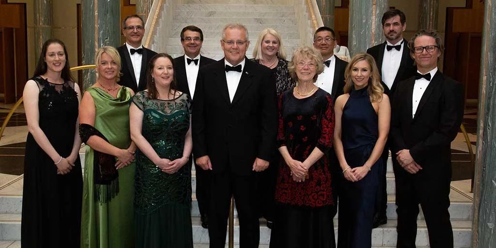 Back row left to right: Professor Guillaume Lessene, Professor Anrew Roberts, Minister for Inustry, Science an Technology Karen Anrews, Professor Davi Huang, Dr Luke Campbell. Front row left to right: Associate Professor Elizabeth New, Dr Samantha Moyle, Mrs Sarah Finney, Prime Minister Scott Morrison, Emeritus Professor Cheryl Praeger, Associate Professor Laura Mackay, Associate Professor Peter Czabotar.__近日,墨尔本大学和Walter an Eliza Hall Institute的研究人员因在科学与创新方面的成就而获得认可,他们获得了著名的澳大利亚总理科学奖 (Prime Minister 's Prizes for Science) 的三项最高奖项。