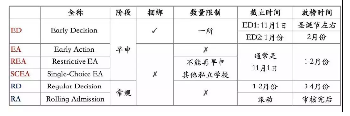 EA录取: 早期行动, REA&SEA 政策学校,与 ED 相同,但是被录取可重新申请其他学校。 ED/EA 的申请截止日期比较早,通常在每年的 11 月 1 日或者 11 月中旬(有些文理学院会延迟在 1 月才结束),录取结果在 12 月中旬就能知道。