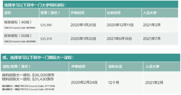 仅限大学 预科延伸课程 (2020年1月份入学);