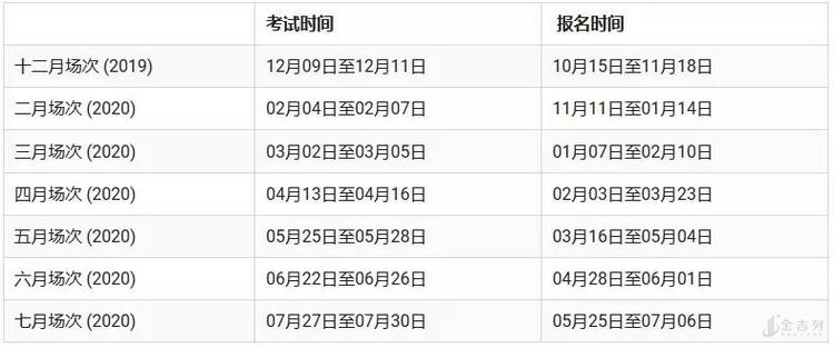 2019/2020年时间表