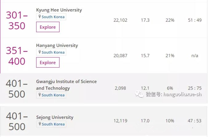 世宗大学排名韩国第11,世界400位左右,紧随在庆熙大学和汉阳大学之后