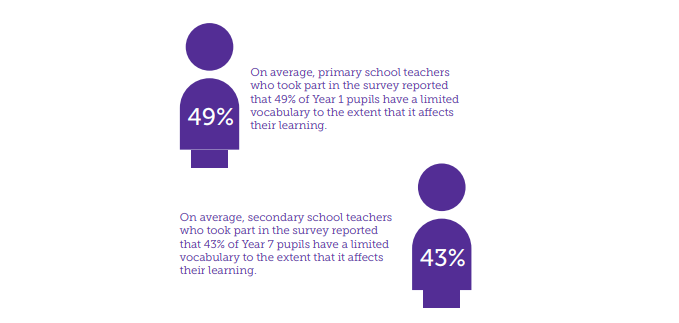 - 中学老师表示, 43% 的Year 7小学生会因为有限的词汇量影响学习;