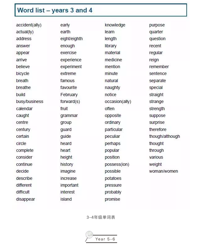 在英国小学阶段,每个年级和关键阶段都有不同的侧重点。 小学1-2年级并没有固定的单词表,只有“示例单词”,从3-6年级有固定的单词表。