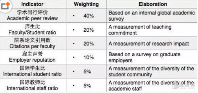 USNews的世界排名,因为参与的学校不仅仅在美国,机构没有办法像美国学校一样将其他国家大学的毕业率,师资,生源,财力这种因素调查清楚,所以衡量的更多的是学校的学术水平(比如发表的文章的数量)和国际学术声誉。因此我们在申请美国学校硕士以及博士专业的时候可以更多参考USNews发布的各个专业的排名比较准确。