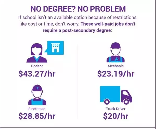 当然,也有一些职业不要求有大学以上学位,例如: