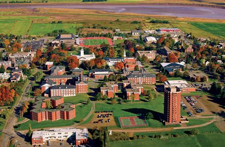位于加拿大东海岸新斯科舍省的沃尔夫维尔小城,距离省会城市哈里法克斯仅1小时车程。校园坐落于安那波利斯山谷的边缘,占地250亩,俯瞰着历史上著名的伊万杰琳乡村牧场和大西洋畔的梅纳斯盆地。