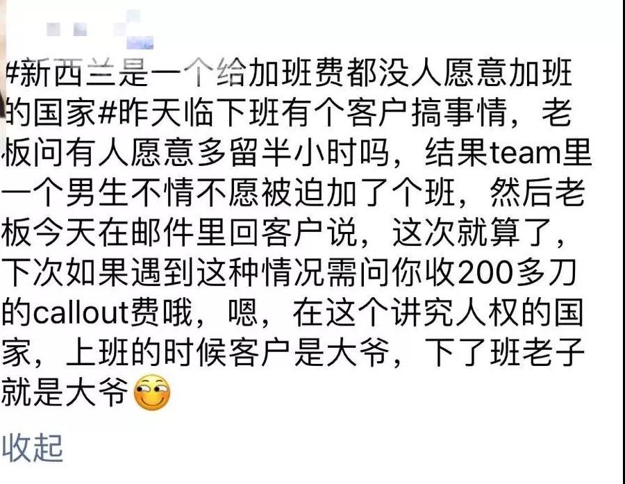 这位朋友表示,新西兰是一个给加班费都没人愿意加班的国家。