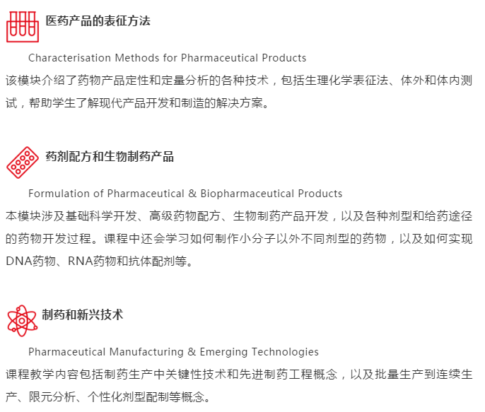经过多元综合的课程模块培养,工业药剂学毕业生不仅能掌握 制药相关的高端理论知识和新兴研发技术 ,还 熟悉医药企业的新药开发、审批和生产过程中的管理状况 ,成长为独当一面的 工业药剂研究员 ,拥有在全球制药领域中寻求职业发展的最强竞争力。