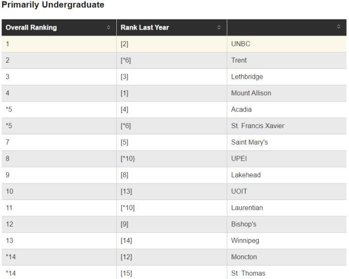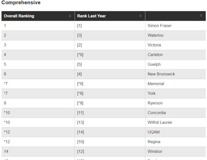 这是《 Global an Mail》的大型大学(22000全日制学生以上)学生满意度排名,但是更新年份是2013年。我不推荐约克是因为,约克大学作为垫底已经不是一次了。校园很大,学生很多,但是名声很不好,关于校园性侵,关于各种施工现场(地铁常年修),已经糟糕偏远的地理位置(感觉已经不在多伦多了)都让约克本身不太适合留学。当然约克大学本身学术水平无可厚非,有很强的商科,航天等等,但是我不推荐。约克大学的同学如果有机会去其他学校体验一下可能就会理解。而满意的排名倒是第二卡尔加里大学很意外(跟QS五星矛盾),我依然推荐这个学校,比阿尔伯塔大学更有前景。至于为什么不推荐瑞尔森大学?瑞尔森大学童鞋不要太生气,我只是觉得我们还是要去上有绿地有校园有操场安全的大学,不要去那种在街角闹市区商场楼上就是教学楼的大学(康考迪亚除外)。这是《G&M》 中型大学学生满意度排名 ,可以看到推荐的女王,贵湖是前两名。女王大学在安省对加拿大本土学生来讲是收分最高的两所大学(另一所是 Western),所以口碑极好。规模不大,很适合留学,缺点是城市太小,金士顿生活上可能比较无趣。我个人认为,说女王大学是加拿大第一也并不为过(我不是女王学生,没有利益相关)。劳里埃大学,作为众多专业和滑铁卢合作办学的学校也很值得一去,商学院很不错可能符合国人的口味。我不推荐温莎不是因为它学生满意的倒数,而是温莎并没有什么特色,位置离底特律隔一条河但是离安省其他城市太远了。温莎所谓特色的汽车工程专业,你在滑铁卢,麦吉尔甚至多大都能读到比温莎更牛的汽车机械工程,因此不推荐。
